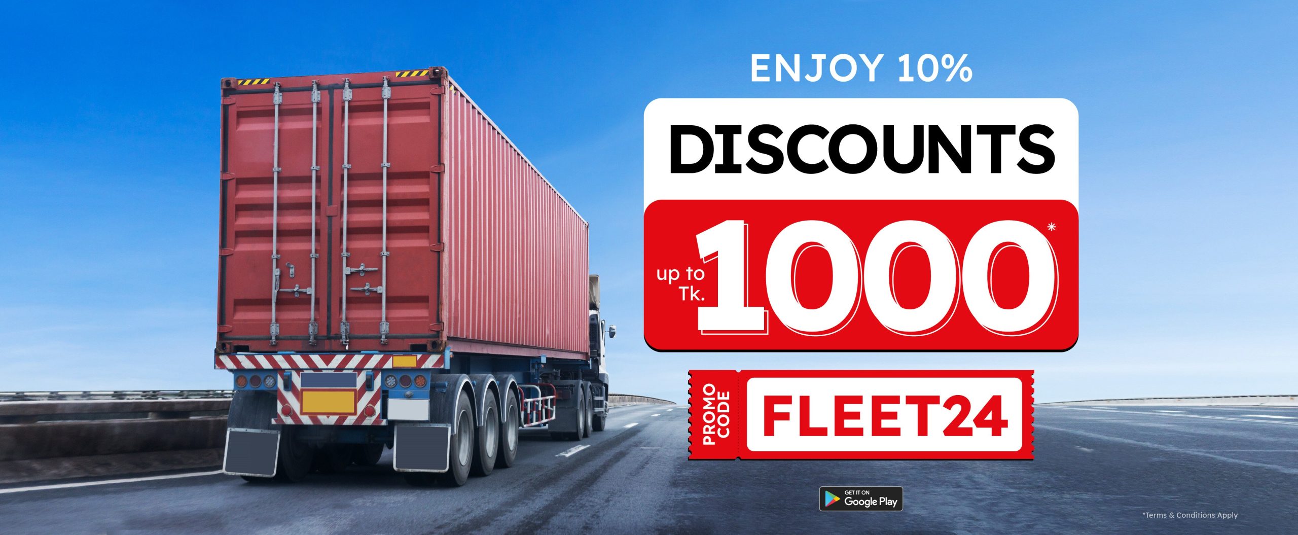 ENJOY DISCOUNTS OF 10% (UP TO TK.1000) BY USING PROMO CODE: FLEET24