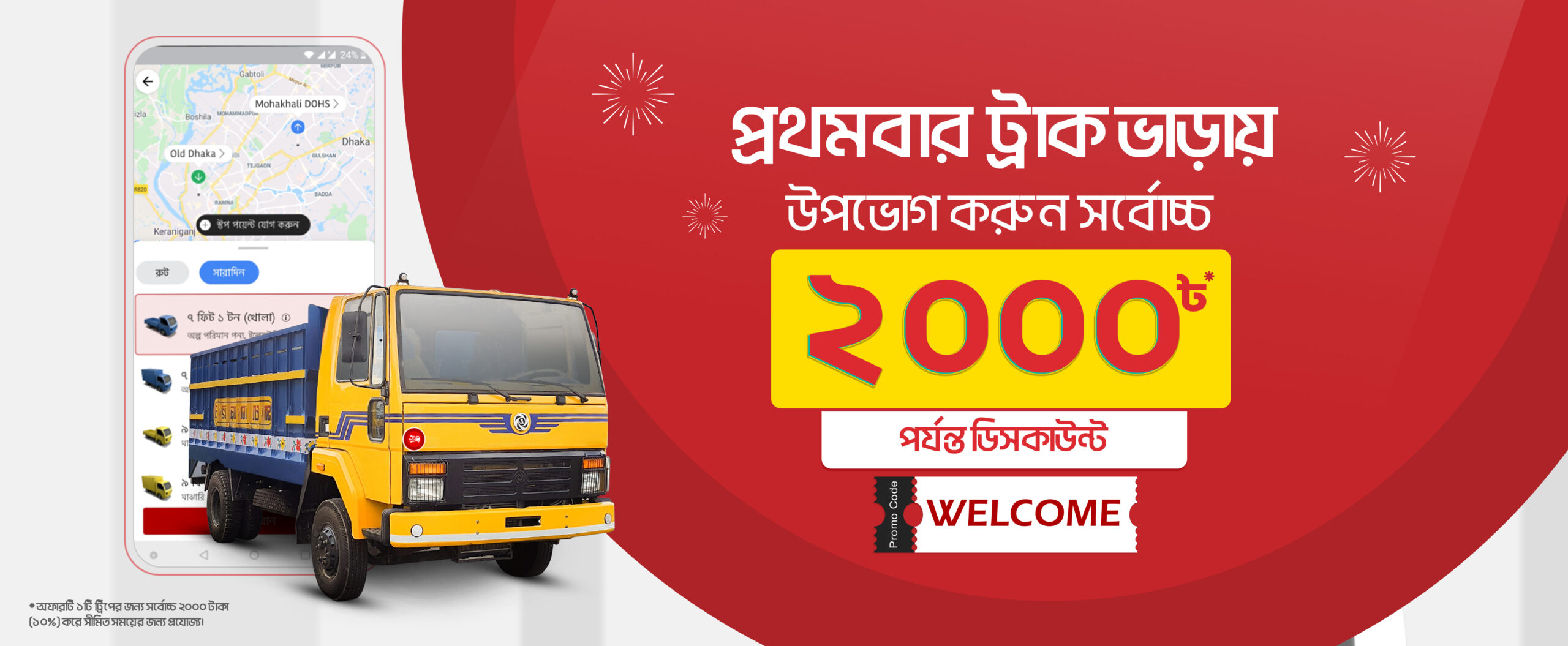 প্রথমবার ট্রাক ভাড়াতে বিশেষ ডিসকাউন্ট!