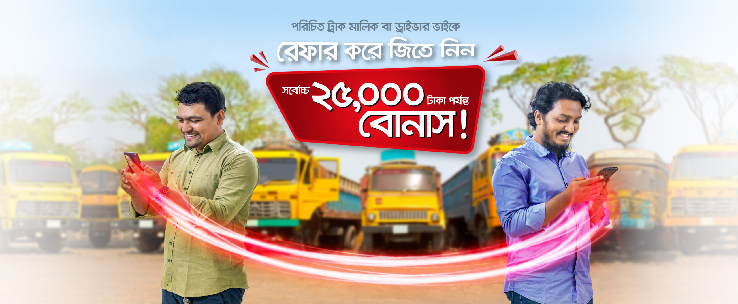 Refer ‘Truck Lagbe Owner’ app to your known truck owners or drivers and win up to 25000 BDT referral bonus