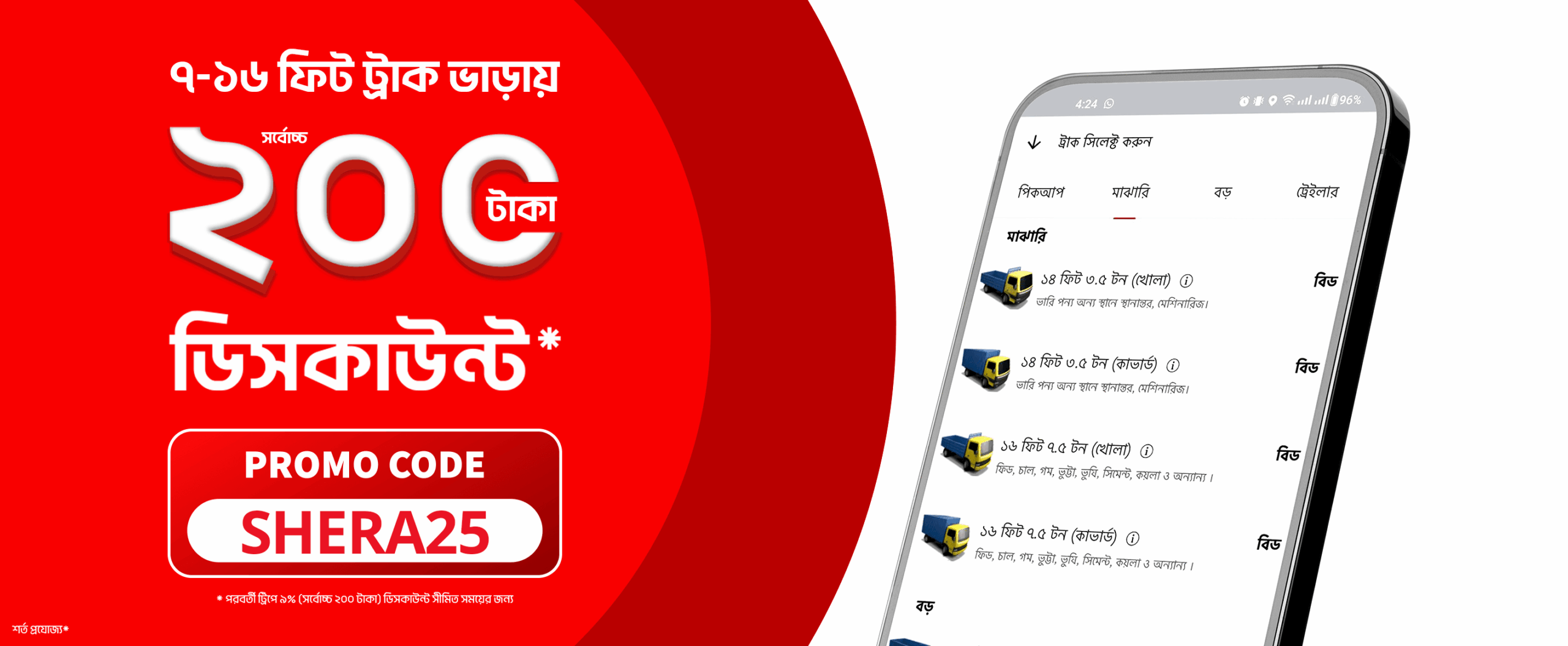 প্রোমো কোডঃ SHERA25 ব্যবহার করে উপভোগ করুন সর্বোচ্চ ২০০ টাকা ছাড়!